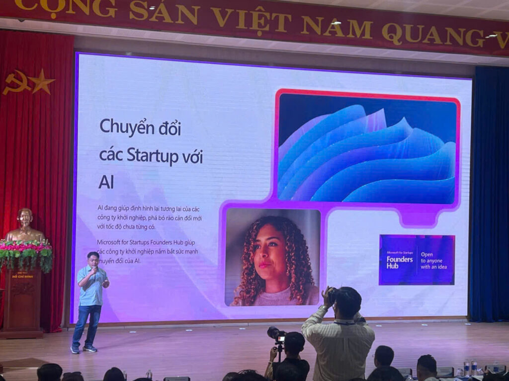 Đến với ngày hội, Ông Trịnh Công Duy – Giám đốc công nghệ của Tổ chức giáo dục InterEdu – Đối tác đào tạo toàn cầu Microsoft đã giới thiệu về chương trình Microsoft for Startups Founders Hub dành cho các công ty khởi nghiệp, các startup sinh viên và chương trình đại sứ sinh viên toàn cầu của Microsoft (Microsoft Student Ambassador Program)