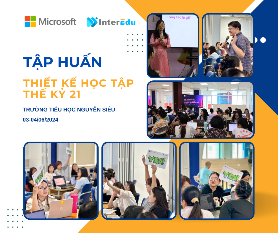 Trong hai ngày 03-04/6/2024 vừa qua, đội ngũ InterEdu đã phối hợp cùng Trường Tiểu học Nguyễn Siêu, Hà Nội tổ chức thành công khoá tập huấn “Thiết kế Học tập Thế kỉ 21” dành cho đội ngũ cán bộ quản lý và giáo viên nhà trường.
