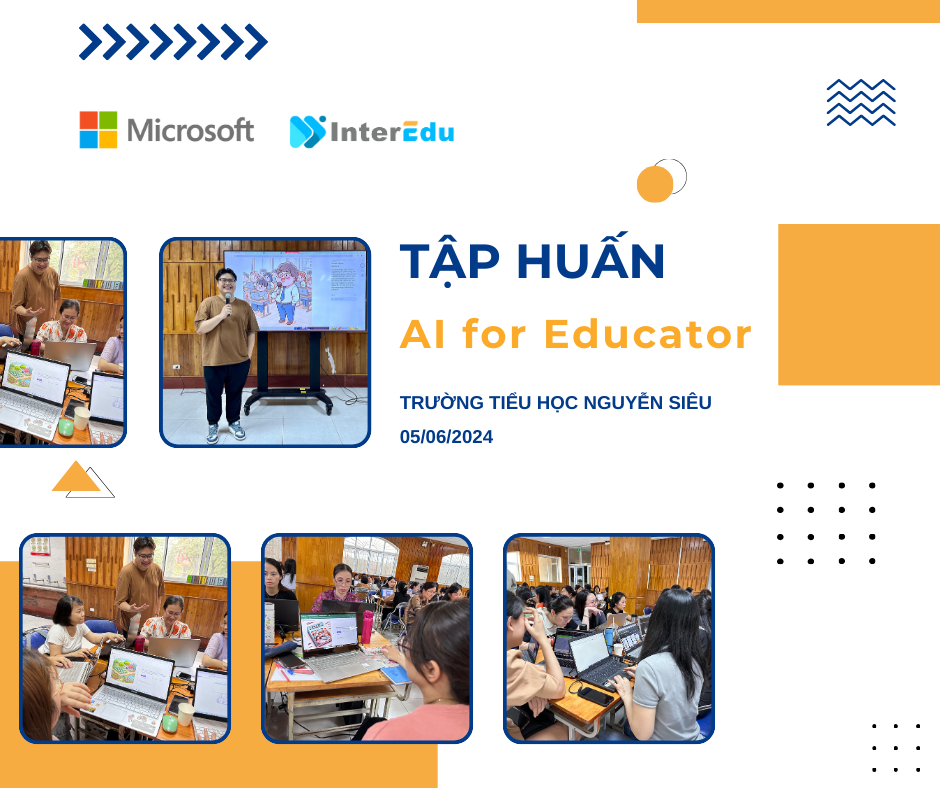 Tiếp nối chuỗi hoạt động tập huấn, đội ngũ InterEdu đã có buổi hướng dẫn Ứng dụng trí tuệ nhân tạo trong phát triển dạy học và công việc dành cho cán bộ, giáo viên và nhân viên trường Tiểu học Nguyễn Siêu vào ngày 05/6/2024.