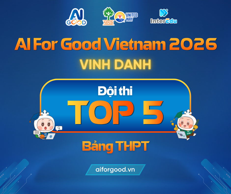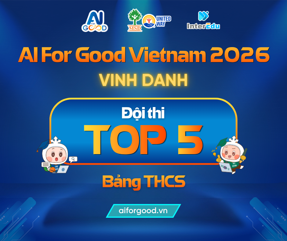 AI FOR GOOD VIETNAM 2026 – hành trình “Trí tuệ nhân tạo, giáo dục nhân văn” – chính thức bước vào giai đoạn bùng nổ! Sau những vòng thi đầy cảm xúc, nơi sáng tạo và trách nhiệm xã hội được đặt lên hàng đầu, chúng ta đã gọi tên Top 5 xuất sắc nhất ở mỗi bảng – những đại diện tiêu biểu đang cùng nhau viết tiếp câu chuyện “AI vì mục đích tốt đẹp”.