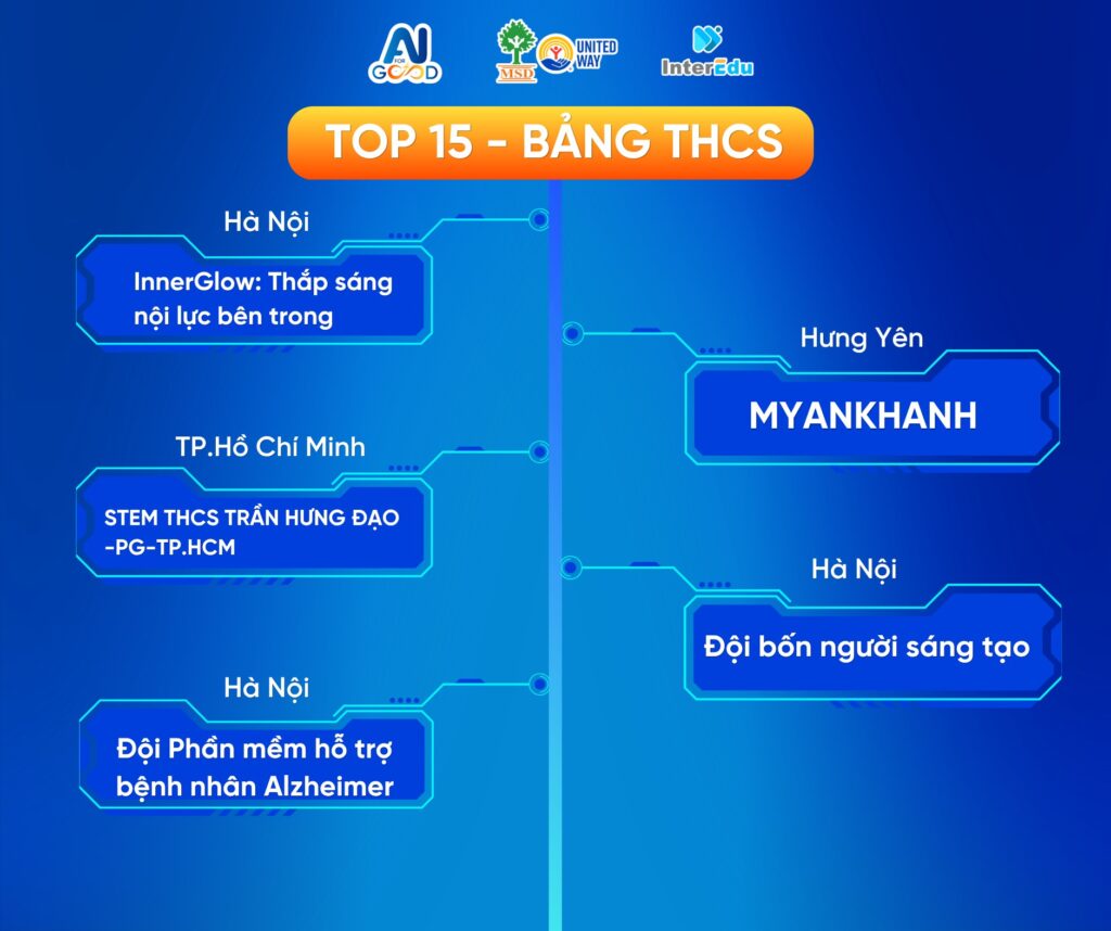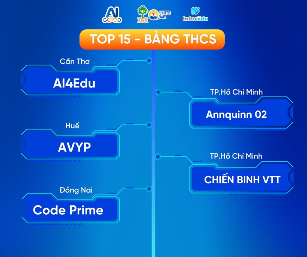 Chúc mừng các đội thi đã góp mặt trong TOP 15 bảng THCS! Đây là dấu mốc quan trọng ghi nhận sự cố gắng và hành trình nghiêm túc của các bạn. Hãy tiếp tục giữ vững phong độ và sẵn sàng cho những thử thách phía trước!