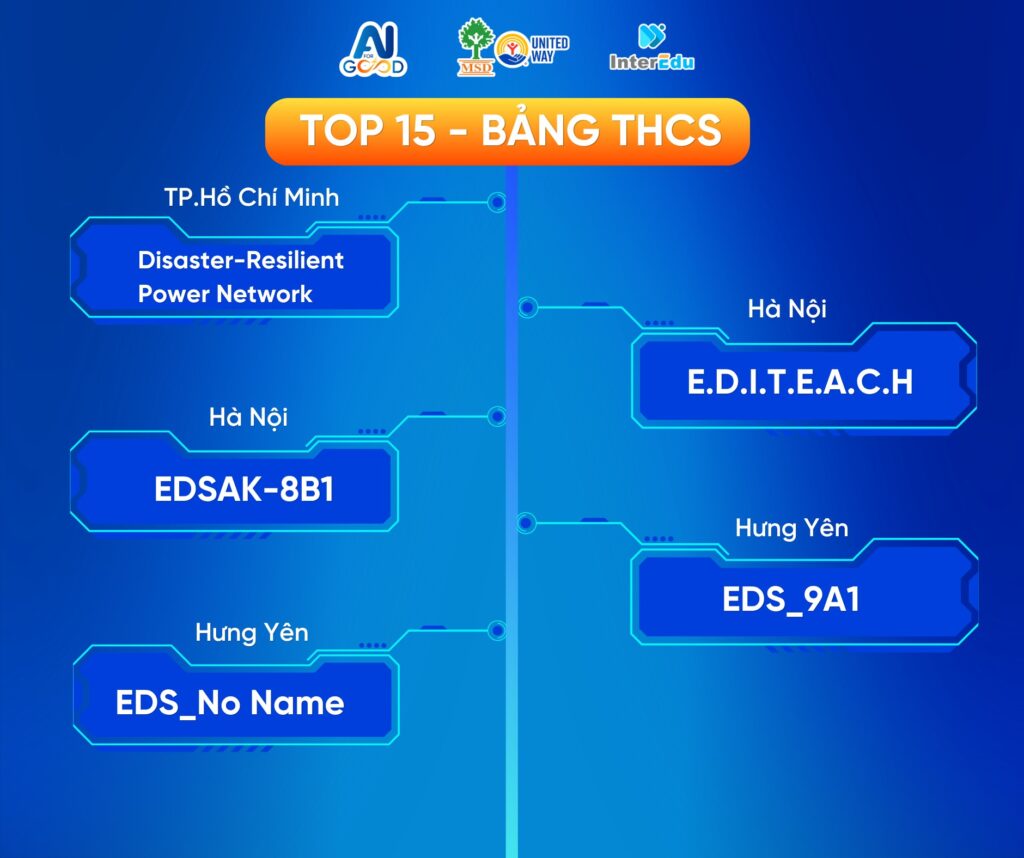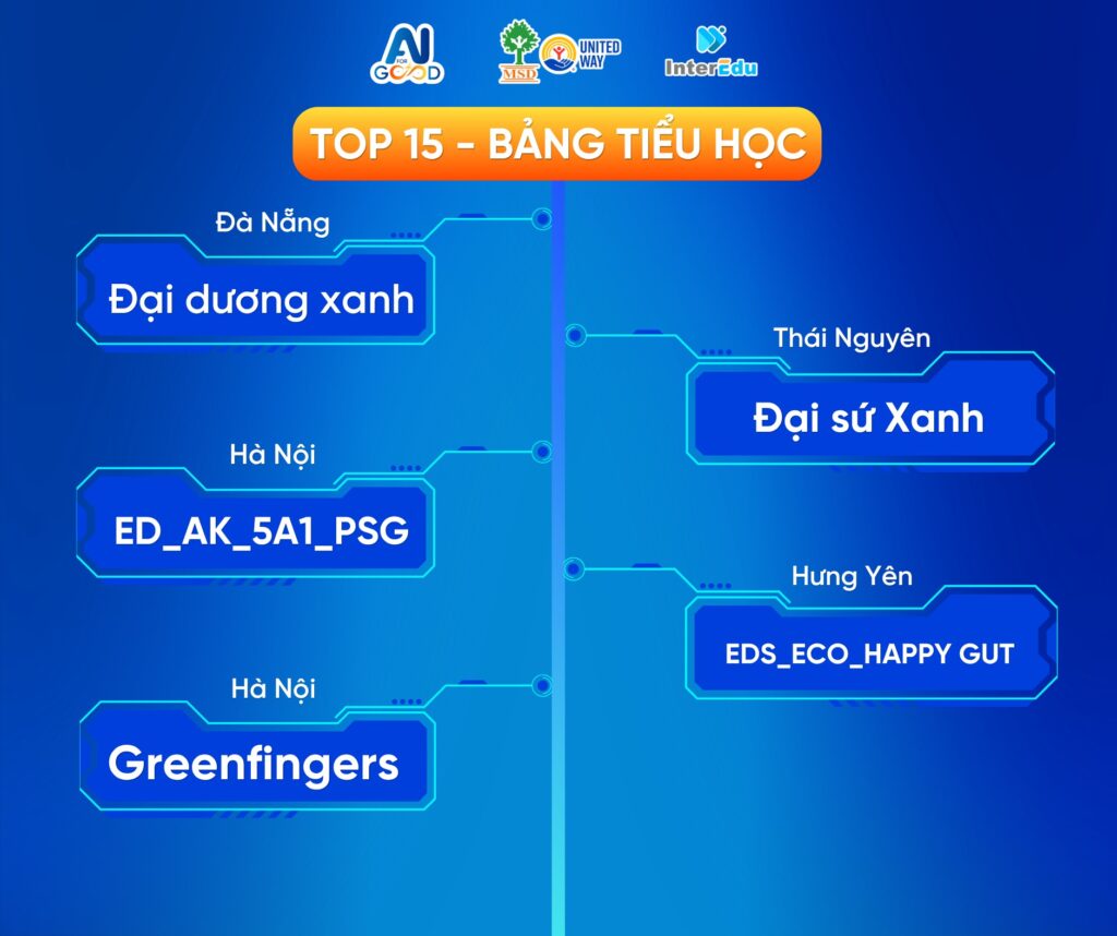 Sau quá trình đánh giá kỹ lưỡng, Ban Giám khảo chính thức công bố Top 15 đội thi xuất sắc nhất ở cả 3 bảng: Tiểu học, THCS và THPT.